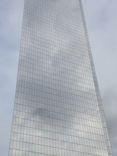 Yesterday I visited the 9/11 Memorial in Lower Manhattan... it's breathtaking. The recessed pools, in particular, are profoundly moving. There are two of these, each at the foundation of the original towers. At the center is a second drop into a seemingly bottomless pit. While I stood in contemplation of one and then the other, I felt as though each droplet of water cascading into the "black hole" were the lives affected by the tragedy of 9/11... falling together and rising together only to plunge again... forever. Peter Walker (landscape architect) and Michael Arad (architect) were the two that designed this minimal masterpiece. According to their winning design statement...